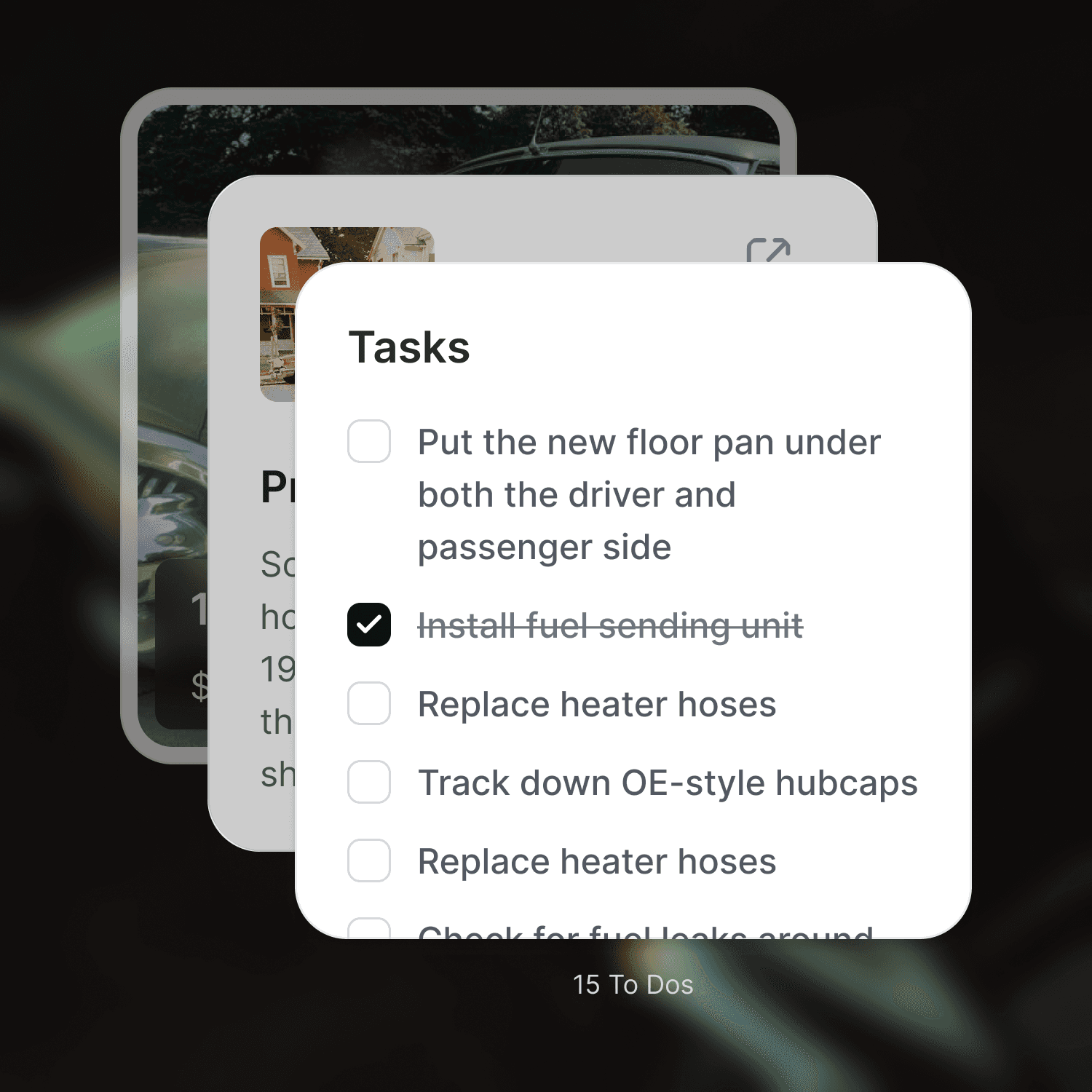 A shed for every part of the journey. A focused space for one car or project. Keep parts, work, notes, and plans together so everything stays easy to follow.