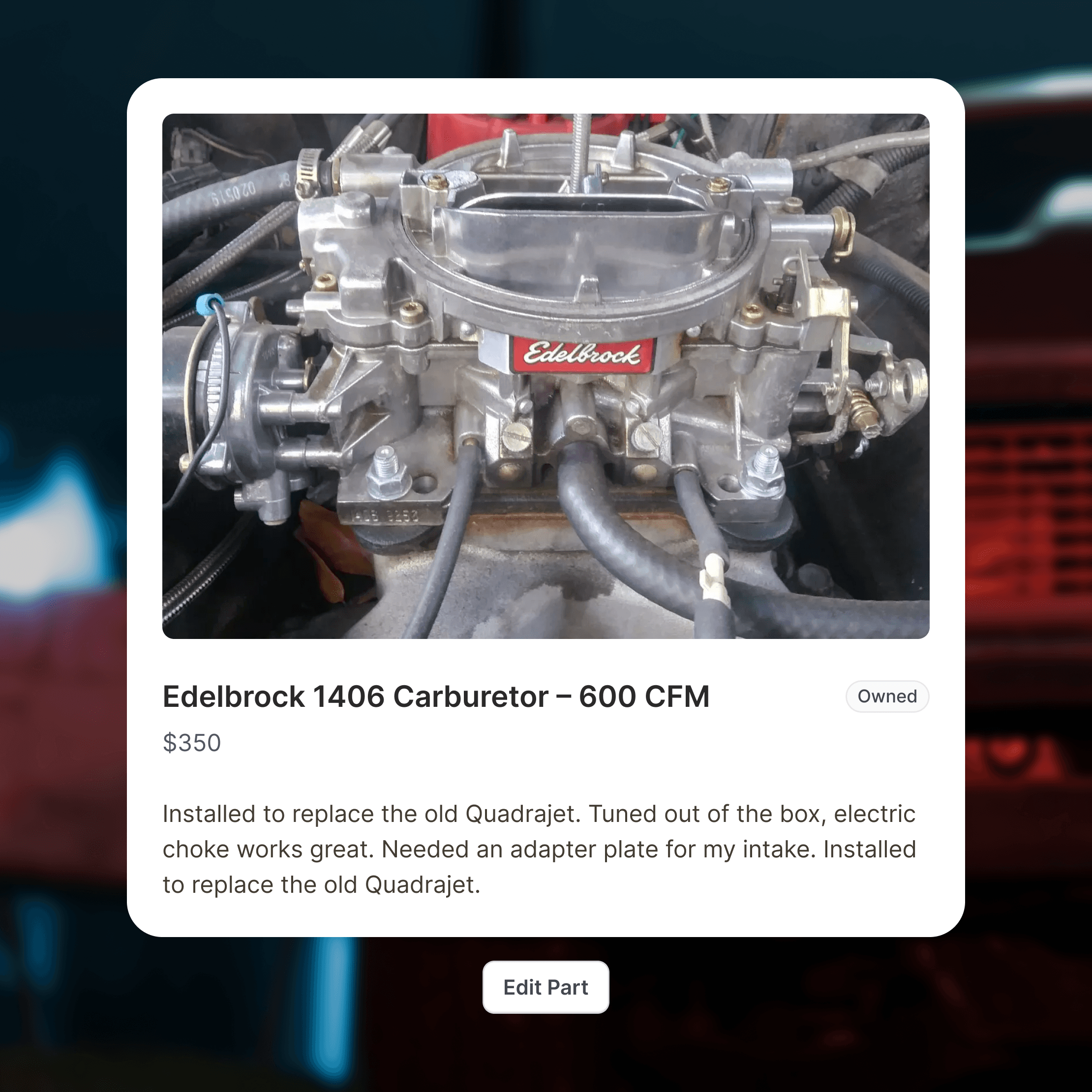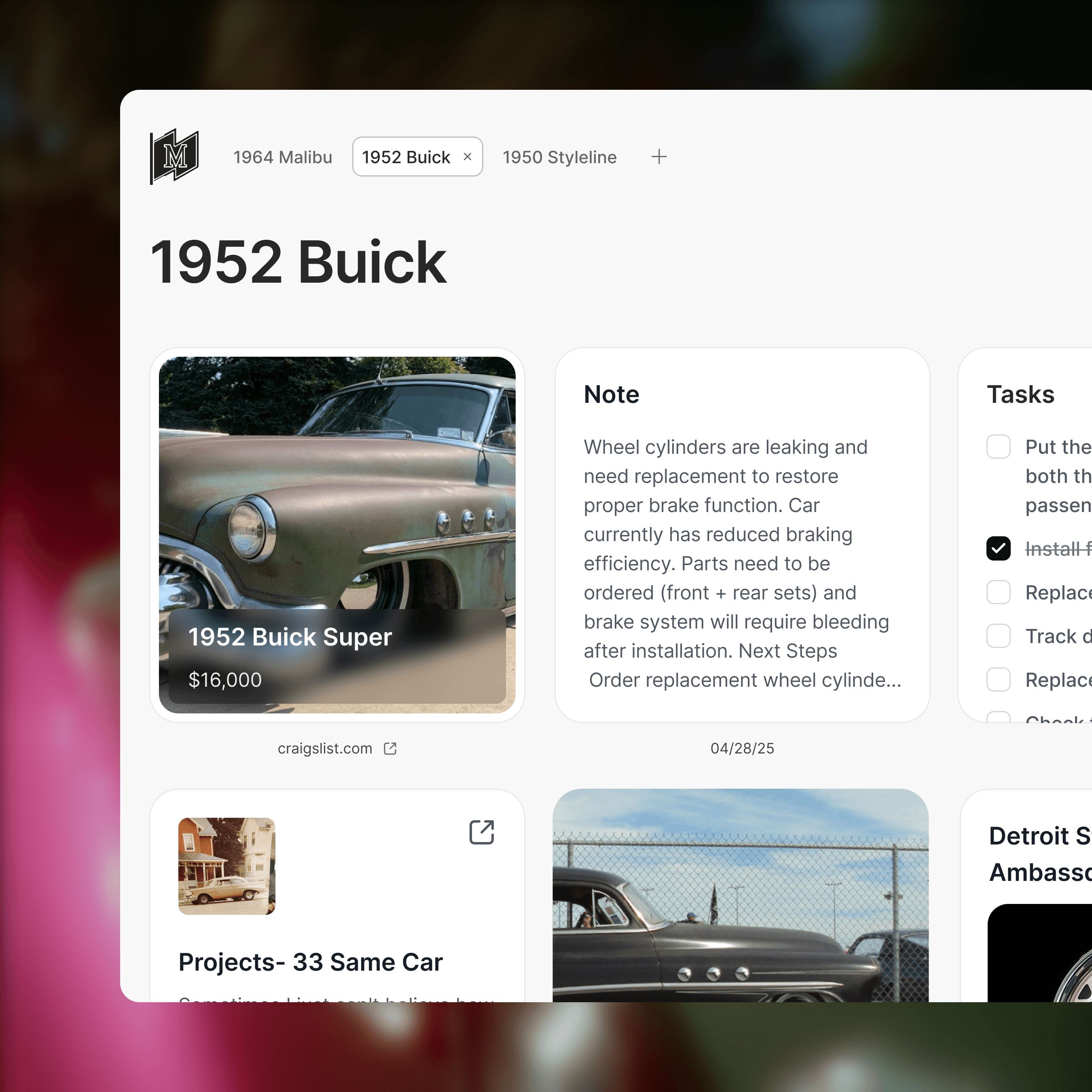 Add things as you find them. Save parts, listings, videos, and ideas from anywhere on the web. MotorShed keeps everything organized with the rest of your work.